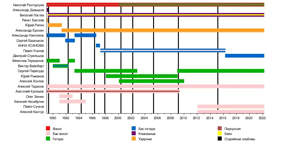 В этом же году происходит смена музыкантов в группе: место за ударными инструментами занял Юрий Рипях, за клавишными — Виталий Локтев. В качестве ещё одного гитариста приглашают Александра Вайнберга.