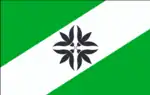 Флаг: на зелёном полотнище широкая белая полоса и чёрный крест из цветков багульника.