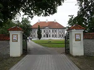 Впервые упомянута в 1452 году, нынешний вид главного здания в стиле классицизма относится в основном к 1808 году, но имеет древние части, относящиеся к концу XV—началу XVI века, с 1950-х годов в нём работает детский дом;