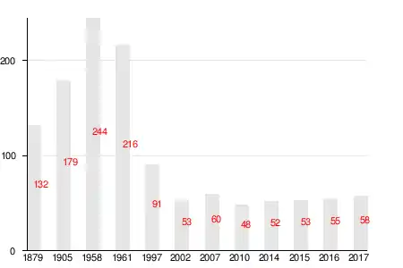 | 1879 | 1905 | 1958 | 1961 | 1997 | 2007[14] | 2010[15] |