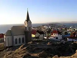Другой заметной достопримечательностью колониальных времён является Фельзенкирхе («Церковь на скале») — лютеранская церковь, построенная в 1912 году на вершине каменистого холма. Церковь с её «приподнятыми» к небу формами представляет собой образец стиля английской готики — его «вертикальной» разновидности, которая доминировала в викторианскую эпоху, а не наиболее популярного в немецкой церковной архитектуре неоготического стиля. Церковь украшена витражами и впечатляющей резьбой по дереву. Окно над алтарём — личный подарок немецкого кайзера Вильгельма II.