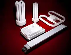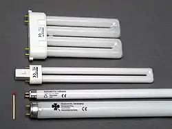 Люминесце́нтная ла́мпа — газоразрядный источник света, в котором электрический разряд в парах ртути генерирует ультрафиолетовое излучение, которое переизлучается в видимый свет с помощью люминофора — например, смеси галофосфата кальция с другими элементами.