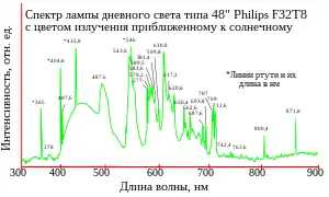 - неравномерный, линейчатый спектр, неприятный для глаз и вызывающий искажения цвета освещённых предметов (существуют лампы с люминофором спектра, близкого к сплошному, но имеющие меньшую светоотдачу);
