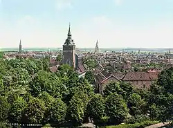 Город в 2003 году, в центре церковь святого Иоанна, за ней — Люнебургская водонапорная башня.