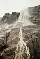 | Отвесная скала высотой 604 метра, раньше часто использовалась бейсджамперами. | Прямоугольная скальная платформа 25×25 метров. Хорошо видна трещина у основания площадки. | До сих пор не известно ни об одном трагическом случае. |