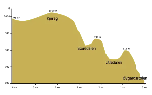 В среднем посещение Кьёрага займёт у вас около 2,5 часов в одну сторону. Однако подготовленный человек может преодолеть это расстояние намного быстрее. Нередко на Кьёрагболтоне можно встретить и пожилых норвежцев.