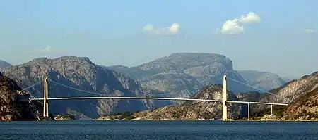 ![]() Вид на Люсе-фьорд с Прекестулена | |