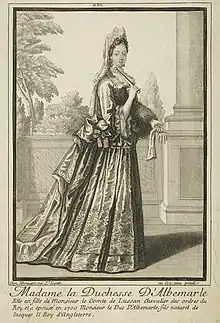 Жена (контракт 26.03.1674): Мари-Франсуаза де Реймон де Бриньон (ум. 8.10.1716), единственная дочь и наследница Анри де Раймона, сеньора де Бриньон, де Санильяк и де Розьер, и Маргерит де Брюес де Сен-Шат. По словам Сен-Симона, «это была особа высокого роста, но весьма скромного происхождения, (…) хитрая, изворотливая, смелая, дерзкая, предприимчивая, изобретательная в интригах, сумевшая вытянуть от отеля Конде все, что только можно; она так усердно угождала мадам дю Мэн, что сумела выдать свою единственную дочь за герцога Олбемарла, второго бастарда короля Якова II, и буквально дневала и ночевала в Со»[3]
