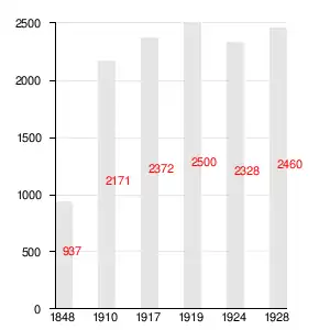 Изменение численности прихожан за период с 1848 по 1928 год[1][16][17][18][19]: