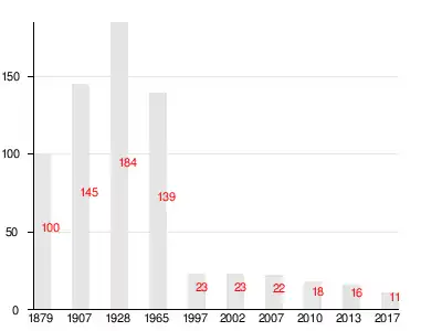 | 1879 | 1909[17] | 1928 | 1965 | 1997 | 2007[18] | 2010[19] |