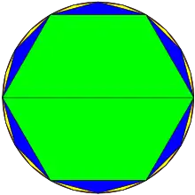 Позднее Лю Хуэй придумал быстрый метод вычисления и получил приближённое значение 3,1416 только лишь с девяностошестиугольником, используя преимущества того факта, что разница в площади следующих друг за другом многоугольников формирует геометрическую прогрессию со знаменателем 4.