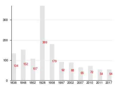 | 1838 | 1848 | 1862 | 1928 | 1958 | 1997 | 2002 |