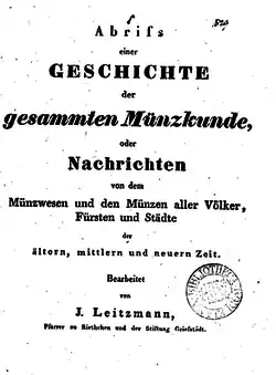 - Abriβ einer Geschichte der gesamten Münzkunde oder Nachrichten von dem Münzwesen und den Münzen aller Völker, Fürsten und Städte der älteren, mittleren und neueren Zeit. — Erfurt, 1828;