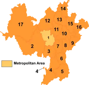 | 16 | Уезд | Лэйбо | 雷波县 | Léibō xiàn | ꃀꁧꑤ | 240,000 | 2,932 | 82 |