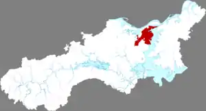 Район делится на 3 уличных комитета, 5 посёлков и 2 волости.