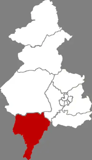 Район делится на 2 уличных комитетов и 18 посёлков.
