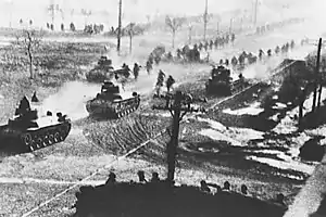 ![]() Войска НОАК на танках Чи-Ха идут на Шэньян | |||