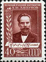 Алекса́ндр Миха́йлович Ляпуно́в (25 мая [6 июня] 1857, Ярославль[1] — 3 ноября 1918[1][2][3], Одесса, Херсонская губерния[1]) — русский математик и механик. Основоположник теории устойчивости равновесия и движения механических систем с конечным числом параметров. Также работал в области дифференциальных уравнений, гидродинамики, теории вероятностей. Брат композитора С. М. Ляпунова.
