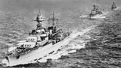- Патянин С. В., Дашьян А. В. и др. Крейсера Второй мировой. Охотники и защитники. — С. 280.