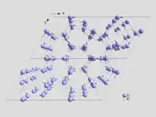 Во льду Ih каждая молекула Н2O окружена четырьмя ближайшими к ней молекулами, находящимися на одинаковых расстояниях от неё, равных 0,276 нм и размещённых в вершинах правильного тетраэдра.