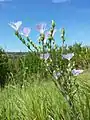 Лепестки длиной 2—3 см, их ноготки[неизвестный термин] сросшиеся или слипшиеся между собой. Чашелистики ланцетные, волосистые, по краю явственно железисто-реснитчатые, в полтора раза длиннее коробочки. Цветки светло-голубые, реже бледно-сиреневые. Цветёт в июне, плодоносит в июле.