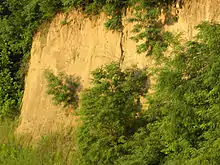 Лёсс (нем. Löß или Löss — рыхлый, осыпающийся) — осадочная горная порода, неслоистая, суглинисто-супесчаная, имеет светло-жёлтый или палевый цвет, сложена преимущественно пылеватыми зёрнами. Залегает в виде покрова от нескольких метров до 50—100 м — на водоразделах, склонах и древних террасах долин.