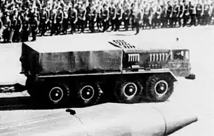 В соответствии с ПСМ № 839—379 от 21 июля 1959 года НИИ-1 (будущий Московский институт теплотехники) начал проектирование первой советской твердотопливной управляемой оперативно-тактической ракеты 9М71 «Темп» с дальностью полёта 600 км и мощностью боевой части 300 кт[16]. Пусковую установку 9П11 (Бр-225) предлагалось разместить на базе МАЗ-535В в сцепе с полуприцепом МАЗ-5248 грузоподъёмностью 25 т[5][17] (по другим данным — на базе МАЗ-537Б[16]). Разработка пусковой установки Бр-225 началась 14 февраля 1959 года на заводе «Баррикады», полигонная пусковая установка Бр-234 для лётных испытаний ракеты была изготовлена в 1960 году, а опытный образец Бр-225 — к 1962 году; кроме того, велась разработка пусковых установок Бр-240 (для транспортировки на вертолётах) и Бр-264 (на шасси МАЗ-543)[16]. Испытания показали недостаточность технических характеристик ракеты и разработка комплекса была свёрнута ПСМ № 800—273 от 16 июля 1963 года[16].