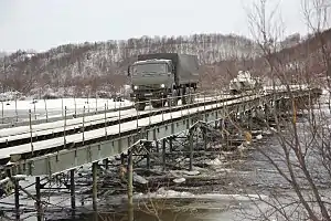 Мост длиной 118,24 м и грузоподъемностью 50 т собирается силами роты (40 солдат и сержантов) за 7-8 часов, путепровод — за 4-5 часов.