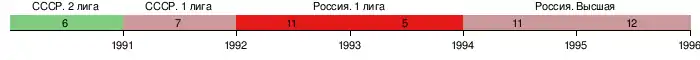 | 1993 | Первая лига | 5 | 20 | 7 | 6 | 7 | 25-31 | 20 | |