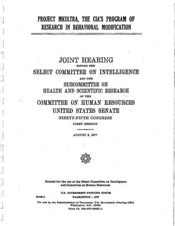 - U.S. Senate: Joint Hearing before The Select Committee on Intelligence and The Subcommittee on Health and Scientific Research of the Committee on Human Resources, 95th Cong., 1st Sess. August 3, 1977.