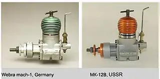 МК-12В был нелицензионной копией мотора Webra Mach-1 конструкции Мартина Бодемана (Martin Bodemann) который производился немецкой (западноберлинской) фирмой Webra. Буква «В» в названии двигателя указывала на происхождение от прототипа «ВЕБРА».[2]