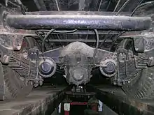 МТБ-82 является двухосным троллейбусом, у которого ведущими колёсами являются задние, а передние служат для задания и смены направления движения. Колёса, полуоси, элементы тормозных механизмов и подвески собраны в отдельный конструктивный узел — так называемый мост. Оба моста подвешиваются к раме МТБ-82 на полуэллиптических листовых рессорах. Передний и задний мосты существенно различаются по конструкции, так как, помимо общих функций, они выполняют свои специфические задачи. Передний мост является менее массивным и сложным по устройству, чем задний; он содержит в себе механизм поворота колёс. Задний мост состоит из массивной балки, прикрывающей полуоси колёс и главную передачу червячного типа, передающую крутящий момент с карданного вала от тягового двигателя на полуоси колёс.