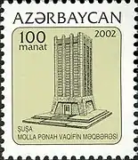 почтовая марка Азербайджана посвящённая мавзолею Вагифа, выпущена в 2002 г.
