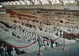 Мавзолей Цинь Шихуанди (Chinese: 秦始皇陵; pinyin: Qínshǐhuáng Líng) расположен в районе Линьтун города Сиань, провинции Шэньси. Погребальный комплекс площадью 56 км² строился более 38 лет (с 246 по 208 год до н. э.), и находится под курганом, высотой 76 метров в форме усеченной пирамиды с основанием 350х345 метров. Мавзолей возведен по образцу столицы Циньской империи Сяньян. Этот комплекс разделен на внешний (6,3 км) и внутренний (2,5 км) город[1].