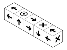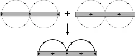 Описываемый эффект воспроизводится повторением последовательности магнитных элементов вектором намагниченности (на передней поверхности) влево, вверх, вправо, вниз, влево.