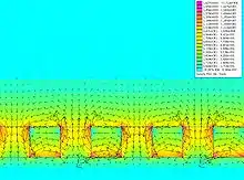 Поле сверху бесконечно длинной сборки может быть записано функцией вида:[4]