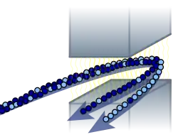 Схема разделения изотопов Урана с помощью мощного магнитного поля. Более концентрированные изотопы урана-235 (на рисунке показаны тёмно синим цветом) в результате будут во внутреннем потоке.