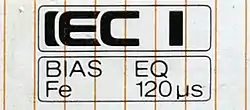 - Постоянная времени цепей частотной коррекции при воспроизведении. Задача этих цепей — компенсация спада отдачи ленты на высоких частотах, который у лент МЭК-I начинается в области 1-1,5 кГц, что и обусловило выбор постоянной времени 120 мкс. Для лент МЭК-II и МЭК-IV постоянная времени уменьшена до 70 мкс. Воспроизведение с постоянной времени 70 мкс уменьшает уровень шума на 4 дБ, но при этом уменьшает и максимальный уровень на выходе усилителя воспроизведения на те же 4 дБ. На практике ленты МЭК-II и МЭК-IV могут записываться[комм. 8] и воспроизводиться и с постоянной времени 120 мкс. В таком режиме, например, в 1980-е годы тиражировались «премиальные» кассеты с записью на хромдиоксидной ленте.
