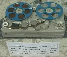 Магнитофон (от магнит и греч. φωνή звук) — электромеханическое устройство, предназначенное для записи звуковой информации на магнитные носители и/или её воспроизведения. В качестве носителя используются материалы с магнитными свойствами: магнитная лента, проволока, магнитные манжеты, диски, барабаны и т. д.