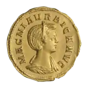 Ауреус, аверс. Бюст Магнии Урбики в диадеме, надпись MAGNIA VRBICA AVG[7]