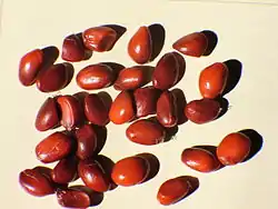 Плод — шишкообразная сборная листовка, состоящая из большого количества 1—2-семянных листовок, открывающихся по спинному шву. Семена клиновидно-яйцевидные, треугольные, чёрные, с маленьким зародышем, погружённым в маслянистый эндосперм, и с мясистым красным или розовым присемянником, по раскрытии листовок свисающие на тонких семенных нитях.