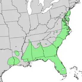 В природе ареал вида охватывает Северную Америку — от Пенсильвании до Флориды, Луизианы и Техаса[2].