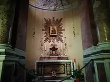 Когда икону привезли в Рим, ее поместили в церкви, названной в честь Алексия, человека Божия, (Сант-Алессио), и где покоятся его мощи. Мадонна ди Сант-Алессио является святой реликвией базилики и украшает собой Капеллу (придел) Святого Причастия (Святых Тайн), созданную в правой части трансепта церкви Сант-Алессио в 1674 году аббатом Анджело Порро. Капелла последовательно была реконструирована во время общей перестройки базилики в 1750—1755 годах, обновлена в 1814 году на средства бывшего испанского короля Карла IV, жившего в Риме после своего удаления из Испании, и тщательно отреставрирована в 1935 году Антонио Муньосом. Икона располагается над алтарём данной Капеллы.