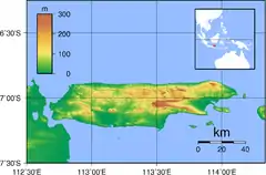 ![]() Мадурский пролив — вид с яванского берега, из восточного пригорода Сурабаи | |