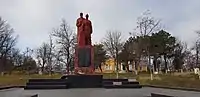 Памятный знак в честь воинов-односельчан, погибших в годы Великой Отечественной войны. Автор — скульптор С. С. Карташов