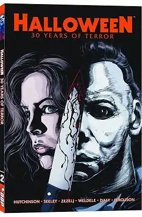 В 2008 году издательство «Devil’s Due Publishing» начинает выпуск серии комиксов. Сначала свет увидела мини-серия из четырёх выпусков под названием «Halloween: Nightdance», написанная Хатчинсоном[39]. Действие происходит в городе Расселвилль, где Майерс начинает преследовать девочку Лизу Томас, похожую на его сестру Джудит. После того, как Майкл держал Лизу взаперти в подвале на протяжении многих дней, девочка боится темноты. Годы спустя, на Хэллоуин Майкл подкидывает ей зловещие детские рисунки. Тем временем, Райан Николс охотится на Майкла после того, как тот похитил его жену. В конце, Майкл делает так, что Райан становится главным подозреваемым в совершённых убийствах, а Лизу он хоронит живьём[40]. По словам Хатчинсона, он не хотел сильно привязывать события к сюжету фильмов, но создать историю, «близкую по духу к оригинальной картине 1978 года». Майкл помешан на Лизе также, как он был помешан на Лори до того, как сиквелы раскрыли родственную связь между Лори и Майклом, объясняющую мотивы Майерса[41]. В качестве дополнения в коллекционном издании серии был опубликован рассказ «Чарли» (англ. Charlie) о маньяке из Расселвилля, которым завладели те же мистические силы, что и Майклом[40]. В честь очередной годовщины франшизы, издательство выпустило специальный комикс под названием «Halloween: 30 Years Of Terror» в августе 2008 года[42]. Автором вновь выступил Хатчинсон. В антологии, вдохновлённой фильмом Карпентера, Майкл появляется в нескольких коротких комикс-рассказах[30]. Последняя мини-серия — неоконченная история под названием «Halloween: The First Death Of Laurie Strode» рассказывает о том, как мучимая образами прошлого, Лори решает имитировать свою смерть и сменить личность[43]. Данная серия должна была связать второй фильм с картиной «Хэллоуин: 20 лет спустя»[44]. Было выпущено два из трёх запланированных выпусков[45].