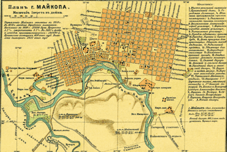 - Майкоп // Энциклопедический словарь Брокгауза и Ефрона : в 86 т. (82 т. и 4 доп.). — СПб., 1890—1907.