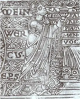 ![]() Блаженный епископ Майнверк. Самое раннее изображение Майнверка с переносного алтаря Рогира из Хельмарсхаузена. 1100 год. Архиепископский музей диоцеза Падерборн | ||