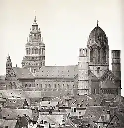 Строительство собора началось предположительно в конце X века, в последующие века достраивались различные части, осуществлялись реставрации и восстановления после частичных разрушений. В Средние века в нём короновали нескольких королей. В 1184 году Фридрих I Барбаросса отмечал в нём посвящение его сыновей в рыцари, вошедшее в историю как крупнейшее торжество Средневековья.