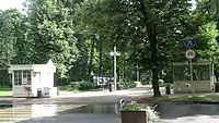 - Станция метро «Сокольники» Сокольнической линии — южнее просека, на Сокольнической площади.
